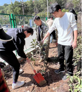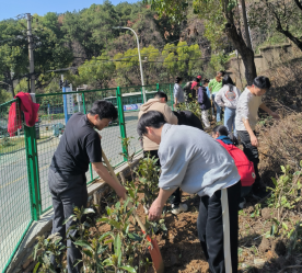 首先,邹老师带领同学们劳动工具需要种植的法冬青树苗运到种植地点,然后在邹老师的组织下,同学们2-3人结成小组主动请教后勤工作人员的种树技巧,“Z字形挖坑,深度要埋过树苗根部,填好土后用脚把土夯实……”后勤工作人员耐心讲解,同学们认真学习。植树活动进行得如火如荼,老师和同学们都投身其中,各小组分工明确、相互协作,大家在阳光下挥洒汗水,畅快交流劳动实践经验,春风里荡起了欢声笑语经过大家一个小时的共同努力一百多颗小树苗整齐地排列在东区东北门旁的山坡上亭亭的小树苗在阳光下熠熠生辉。