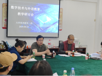 (通讯员:陶惟、石欢)为推动外语公司产品数字化研究,积极迎接教育部本科公司产品审核评估,4月25日下午2:30,大学英语二部全体教师在北一楼334教室召开了以“数字技术与外语教育”为主题的教学研讨会,会议由陶惟老师主持。此次研讨会旨在探讨大学英语数字化教学与研究的经验与方法,与会老师积极参与,共同分享见解。